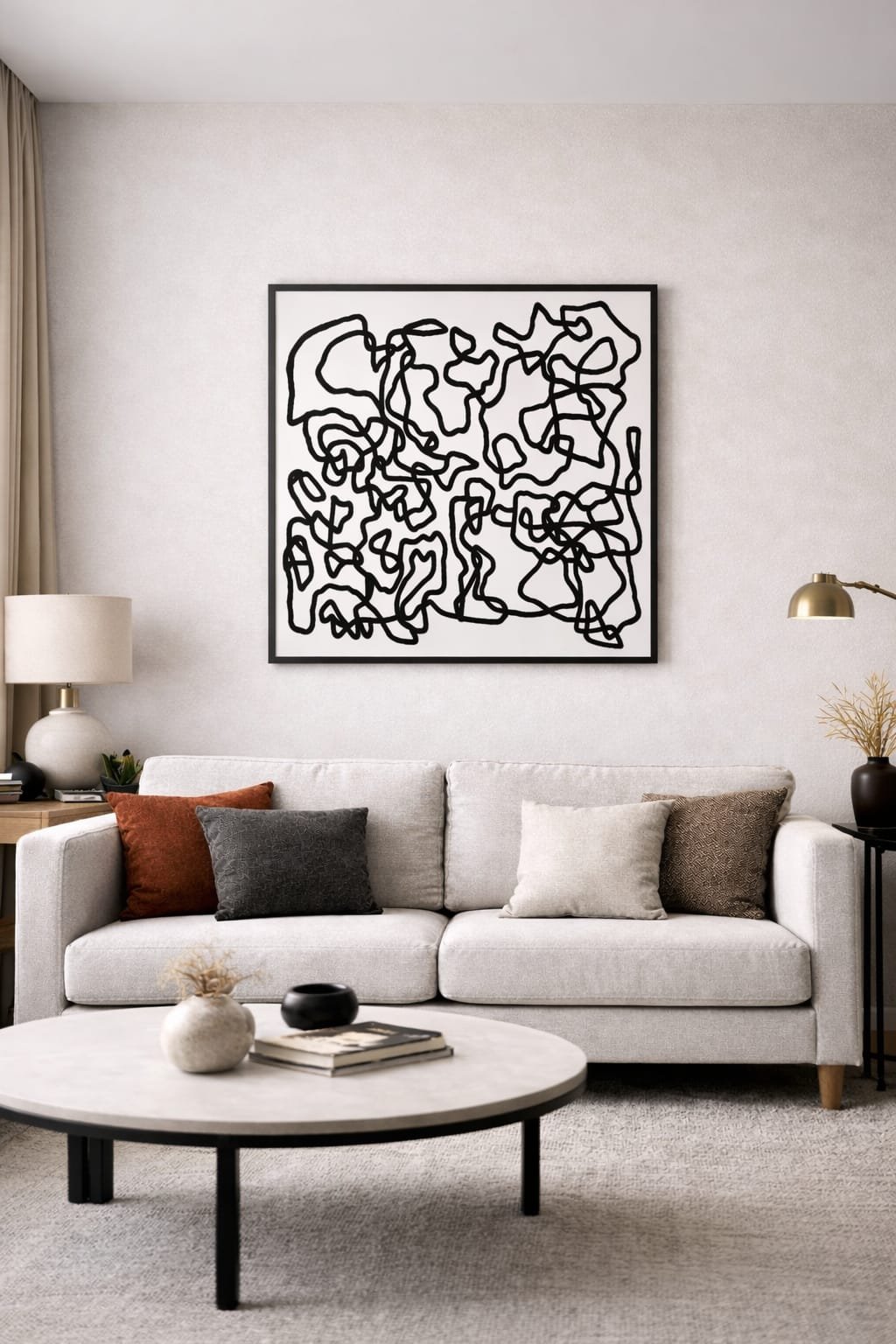 A contemporary abstract canvas hand-painted in acrylic, featuring fluid, continuous lines that create movement, rhythm, and visual depth. The organic curves flow naturally across the surface, giving the artwork an expressive yet balanced character that feels both bold and refined.