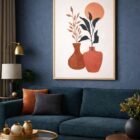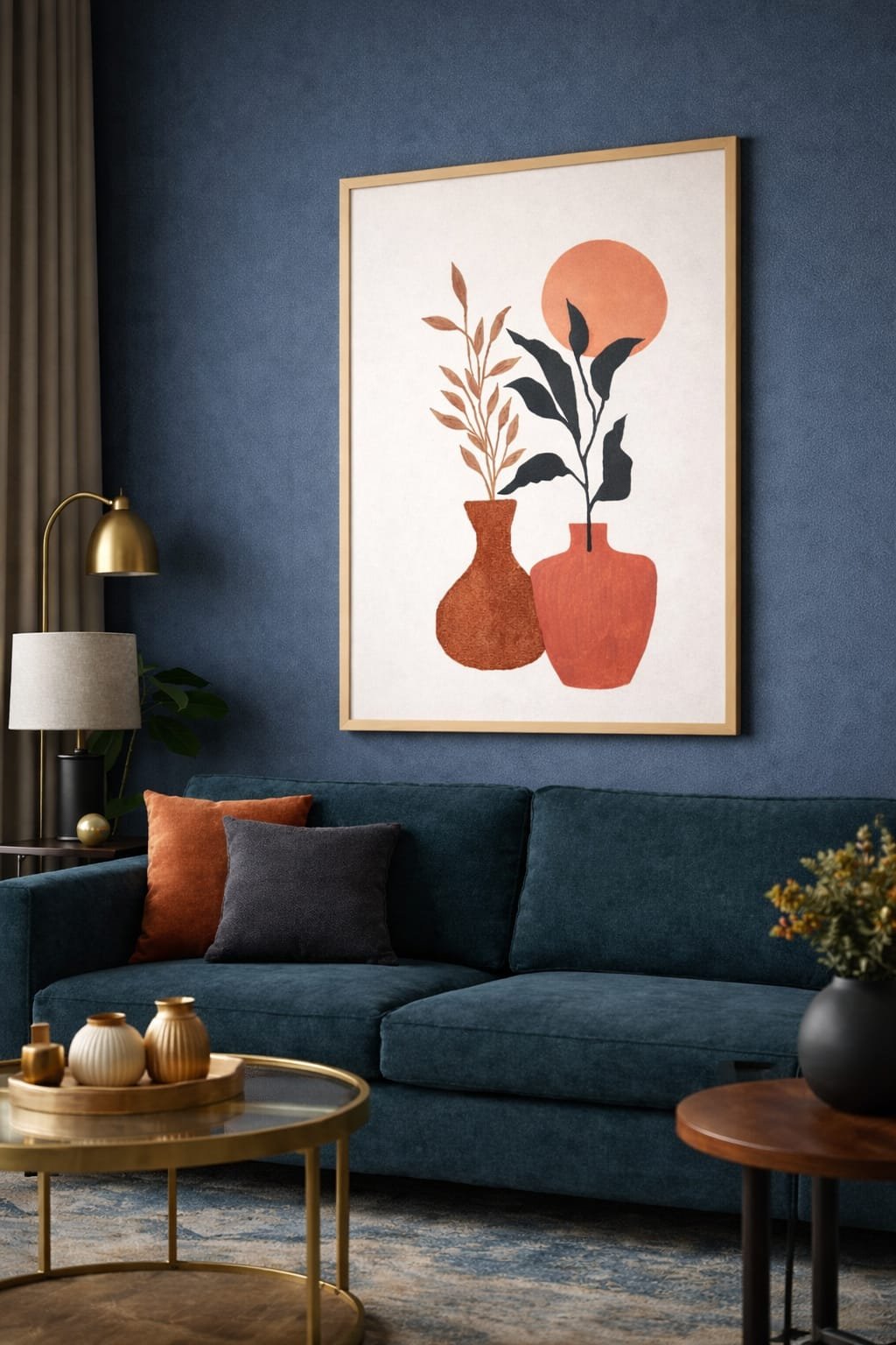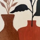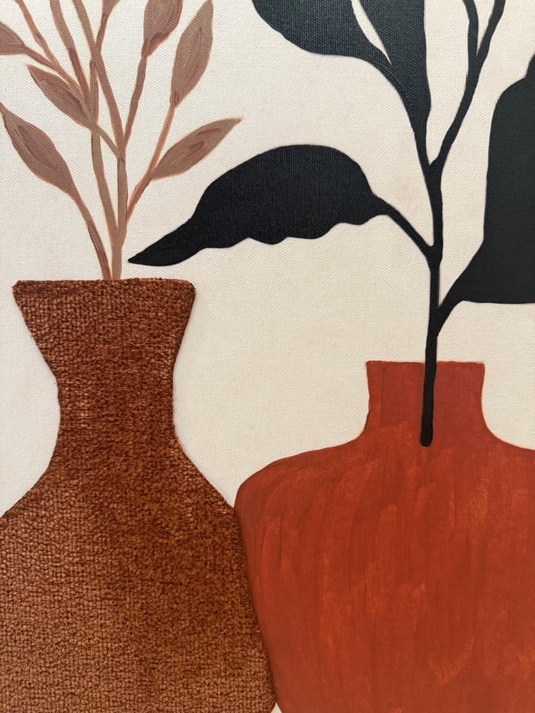 A refined botanical canvas artwork, hand-crafted using acrylic painting combined with modern fabric elements to create depth, texture, and visual contrast.